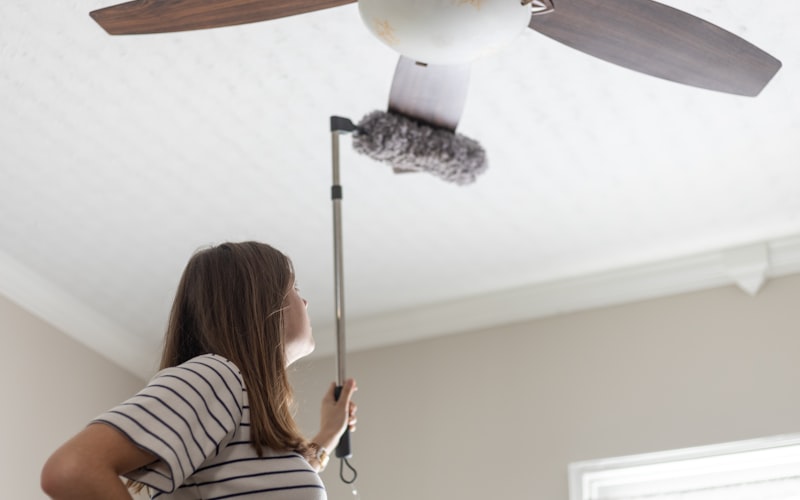 Look up at any ceiling fan that hasn't been cleaned in a month or two, and you'll see it: thick ridges of gray dust lining the top of every blade. Ceiling fans are dust magnets. The spinning motion creates a static charge that pulls dust particles out of the air and glues them to the blade surfaces. And because the dust collects on the top side where you can't easily see it, most people don't notice until the buildup is significant enough to see from below — or worse, until the fan starts flinging dust bunnies across the room when you turn it on.